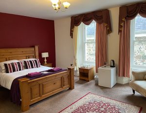 Rooms are situated on the first and second floor of our building. The main accommodations are 5 very well appointed en-suite king size rooms . On our second floor and with restricted head height in parts we have a suite of 3 rooms which are ideal for a family booking or for individuals with ensuite and shared bathrooms.